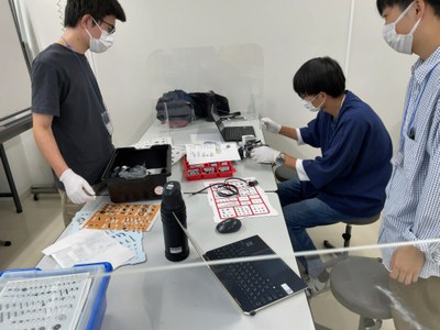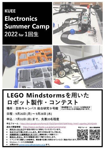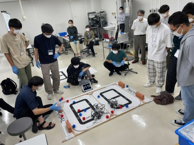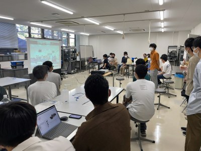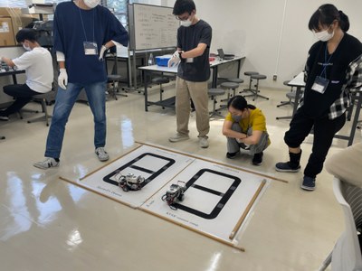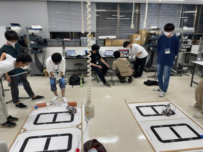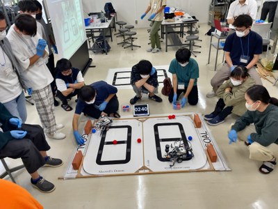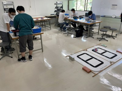 今春開催されたスプリングキャンプに引き続き、万全の感染症対策の下,無事サマーキャンプを開催することができました.今回は18人もの1回生に参加いただき,嬉しい限りです.1回生では,Lego Mindstrom を用いたロボット制作に取り組んでいます.なかなか思い通りにロボットを動かせず,苦しい時間もありますが,グループで協力し,問題を解決できたときの達成感は格別です.また,最後に行われる試合では,毎年白熱した戦いが繰り広げられ,参加者みんなで盛り上がることができます.プログラミング未経験の参加者も多くおりますので,少しでも興味を持った方はぜひ参加してください.みなさんのご応募お待ちしております.