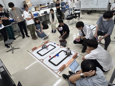 今年も例年通りのサマーキャンプを開催することができました.今回は16人の1回生に参加していただきました.1回生では,LEGO Mindstorms を用いたロボット制作に取り組んでいます.なかなか思い通りにロボットを動かせず,苦しい時間もありますが,グループで協力し,問題を解決できたときの達成感は格別です.また,最後に行われる試合では,毎年白熱した戦いが繰り広げられ,参加者みんなで盛り上がることができます.今年も,教員,TAが参加する懇親会を開くことができました.懇親会の参加は自由ですが,教員やTAと交流できる良い機会だと思います.プログラミング未経験の参加者も多くおりますので,少しでも興味を持った方はぜひサマーキャンプに参加してみてください.みなさんのご応募お待ちしております.